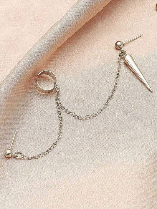 Yu Fashions Silver Geometrical Shaped Chain Drop Korean Earcuff Korean Earings Pair