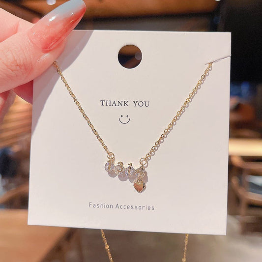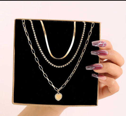 YU Fashions Multilayered Snake Bone Chain Rhinestone Link Heart Korean Necklace