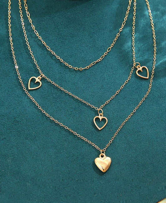 YU Fashions Multilayered Heart Cute Korean Golden Necklace