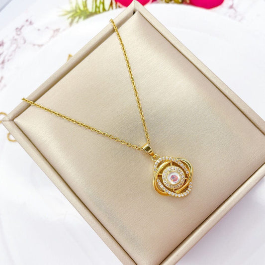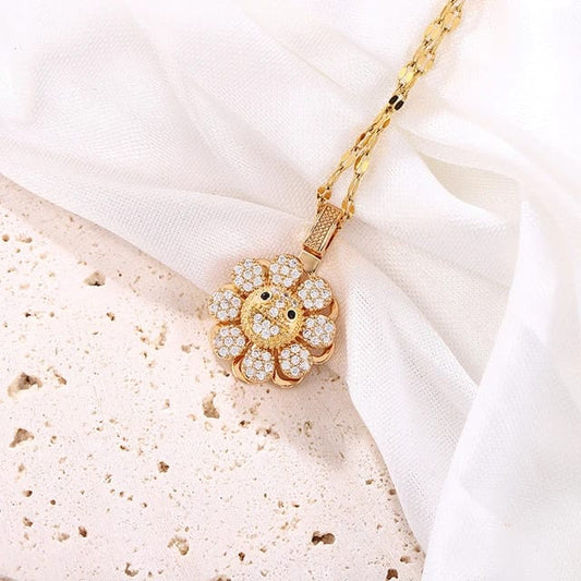 Yu Fashions Face Flower High Fashion Rotatable Crystal Korean Pendent Necklace