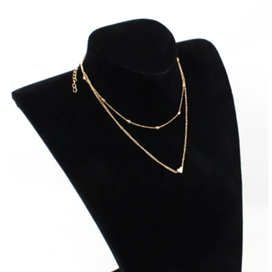 Yu Fashions Silver Geometrical Heart Pendent 2 layered Necklace Chain