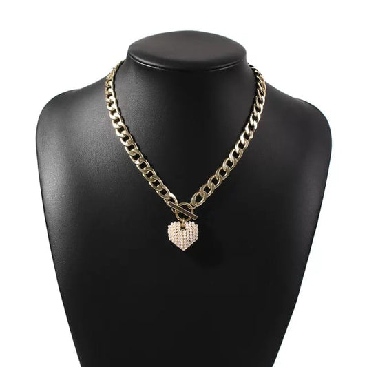 Yu Fashions Heart Shaped Pearl Metal Link Necklace Chain