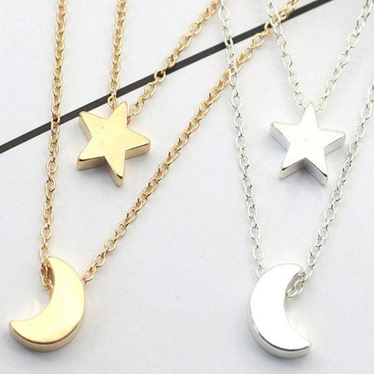Yu Fashions Moon & Star Minimal Pendent 2 layered Necklace Chain