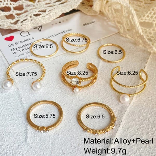 Yu Fashions Pearl Rhinestone Elegant ring Set of 8