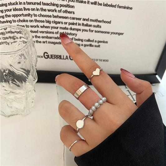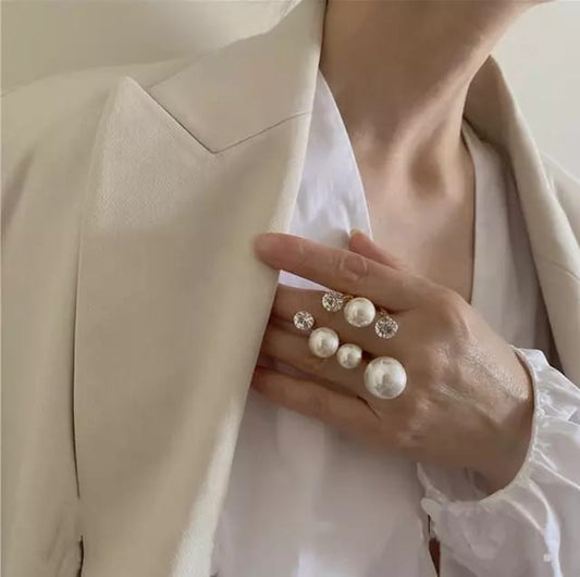 Yu Fashions Pearl High Fashion Korean Ring Set of 5