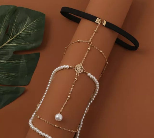 Yu Fashions Pearl Drop Golden Dotted Chain Korean Thigh Chain