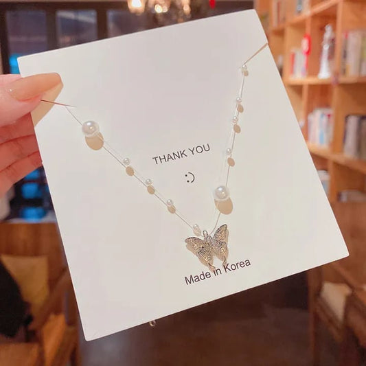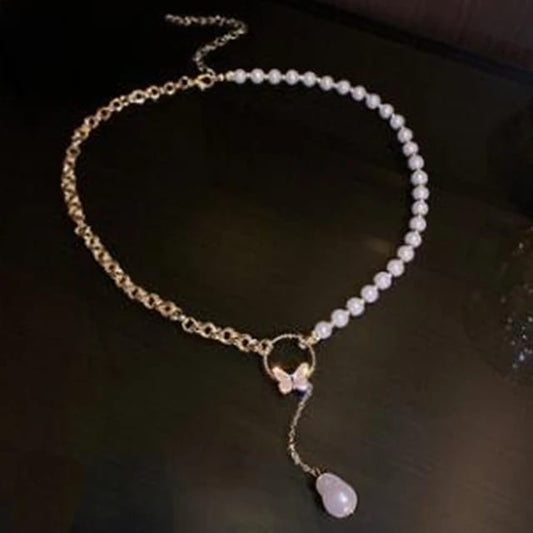 Yu Fashions Scattered Pearl Butterfly Korean Necklace
