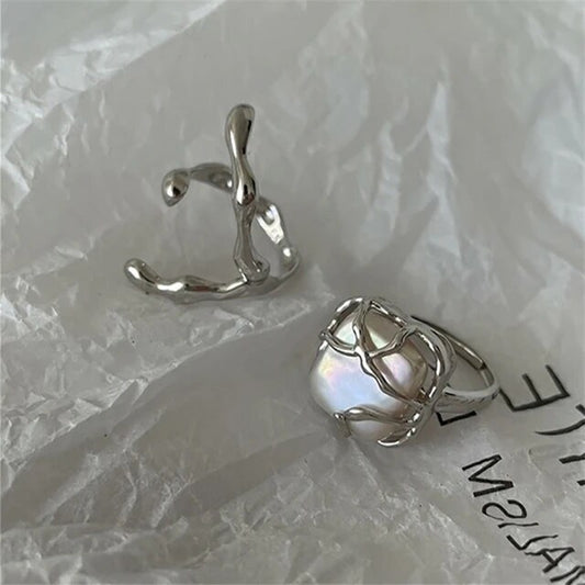 Yu Fashions Geometrical Melted Shaped Korean Ring Set of 2