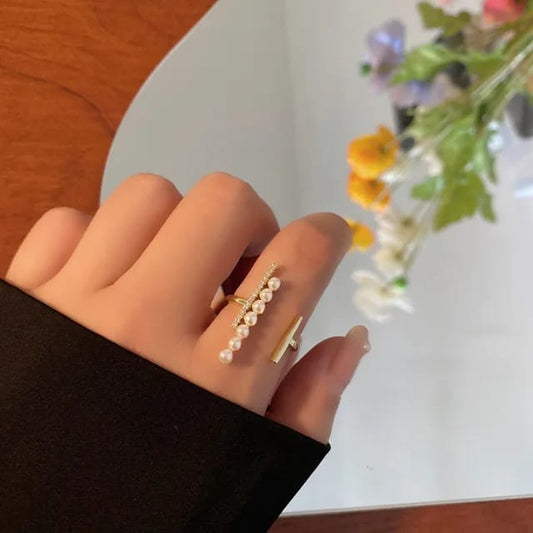 Yu Fashions Pearl Diagonal Line Adjustable Korean Ring