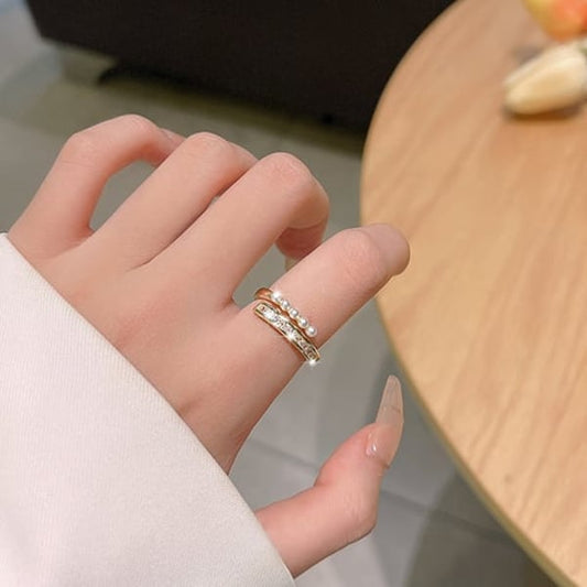 Yu fashions Pearl Plus Cute Adjustable Korean Ring
