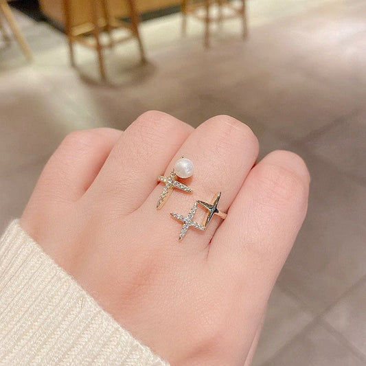 Yu Fashions Pearl Crystal Stone Adjustable High Fashion Korean Ring