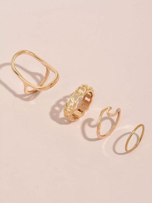 Yu Fashions Link And Circle Golden Ring Set of 4