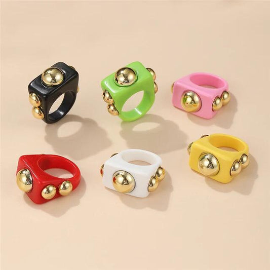 Yu Fashions Chunky Acrylic Resin Golden Beads Ring Set of 6