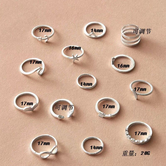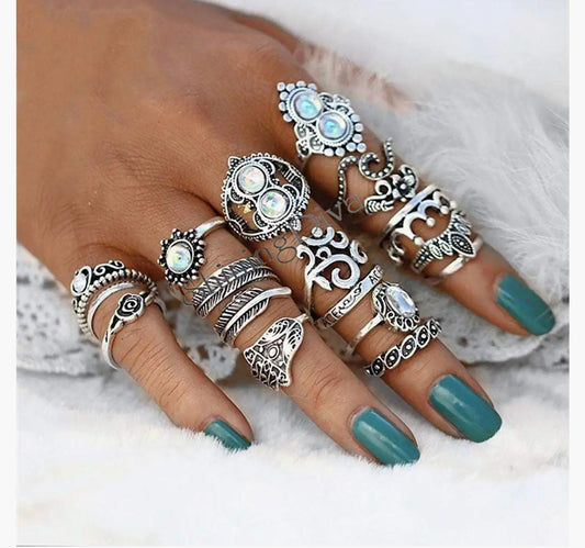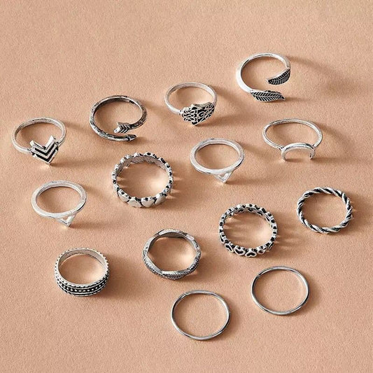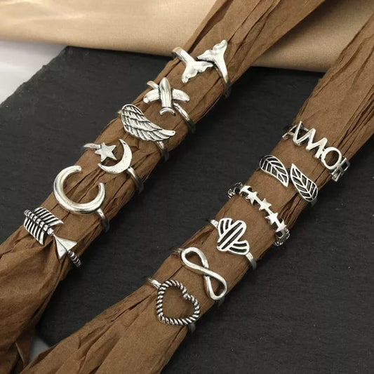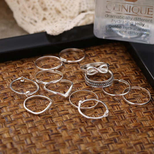 Yu Fashions Infinity Bohemian Silver Ring Set of 14