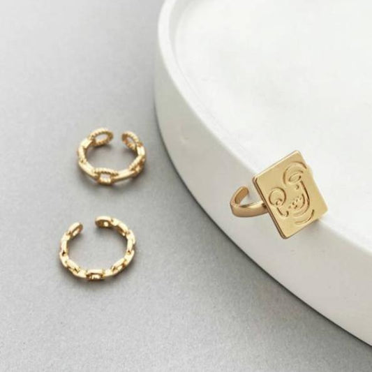 Yu Fashions Bohemian Golden Ring Vintage Face Link Chain Ring Set of 3