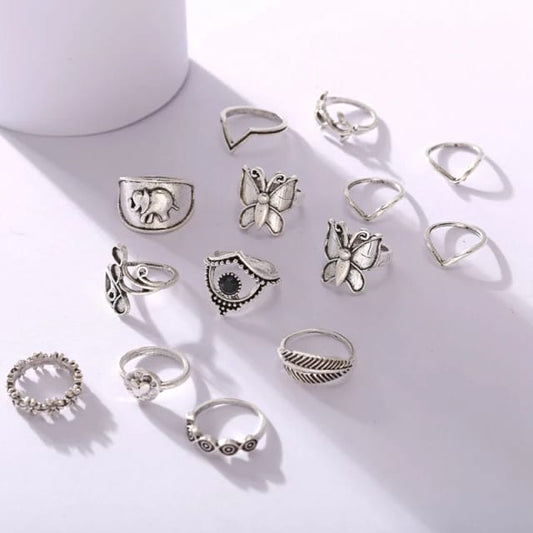 Yu Fashions Butterfly Tribal Ring Set of 14