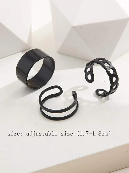 Yu Fashions Vintage Black Solid Ring Set of 3