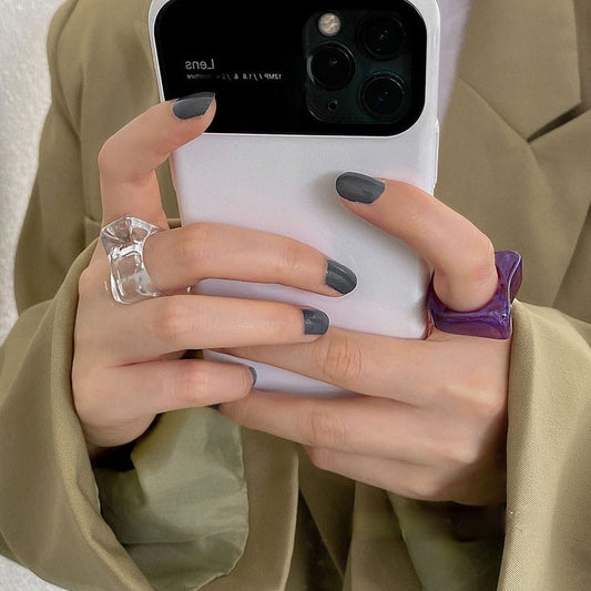 Yu Fashions Geometric Square Acrylic Resin Ring Set Girls Irregular Marble Pattern Colorful Transparent Ring for Men and Women