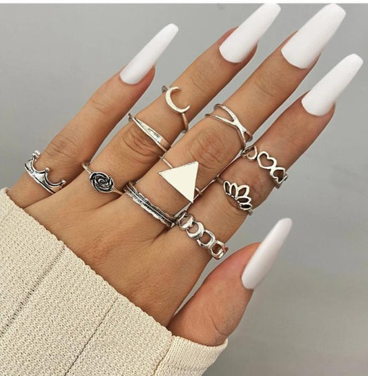 Yu Fashions Triangle Crescent Moon Korean Ring Set of 14