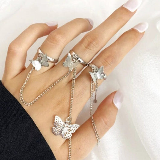 Yu Fashions Butterfly Joined Chain Korean Ring Set